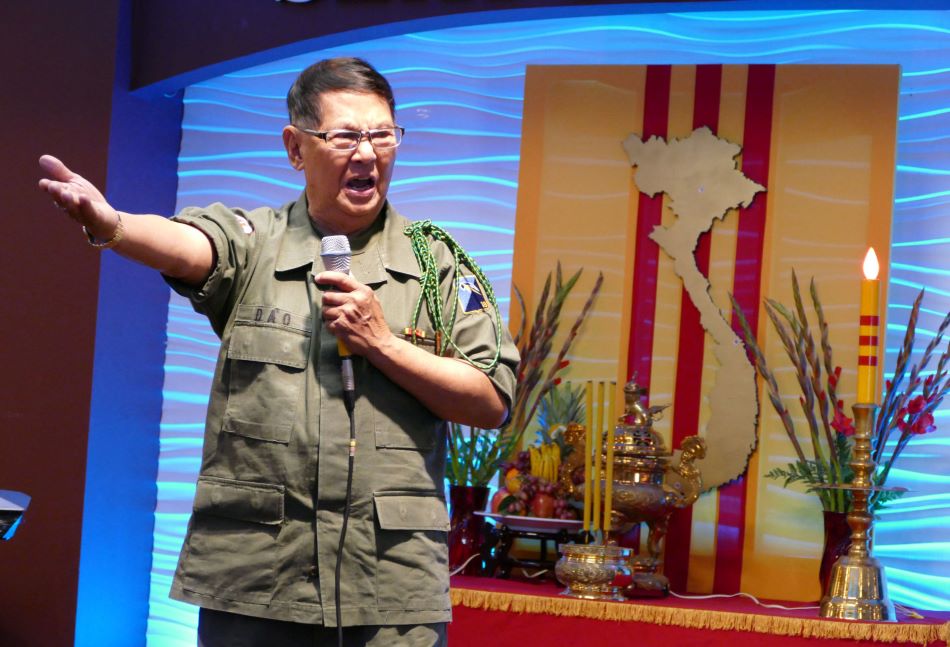 Thiếu Tướng Lê Minh Đảo trong lần tham dự hội ngộ Sư Đoàn 18 ở Little Saigon năm 2015. (Hình: Văn Lan/Người Việt)Ông Rouda được trích lời nói: “Kính thưa bà chủ tịch Hạ Viện, hôm nay tôi vinh danh Thiếu Tướng Lê Minh Đảo, người vừa từ trần hôm 19 Tháng Ba. Thiếu Tướng Đảo đã cống hiến 87 năm cuộc đời của mình để chiến đấu vì lý tưởng tự do và phục vụ đồng bào.”
